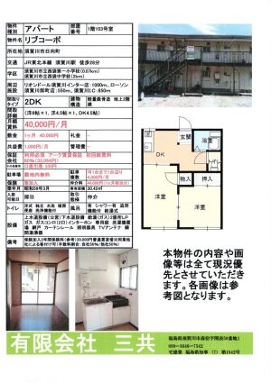 最寄駅 JR東北本線須賀川駅徒歩28分